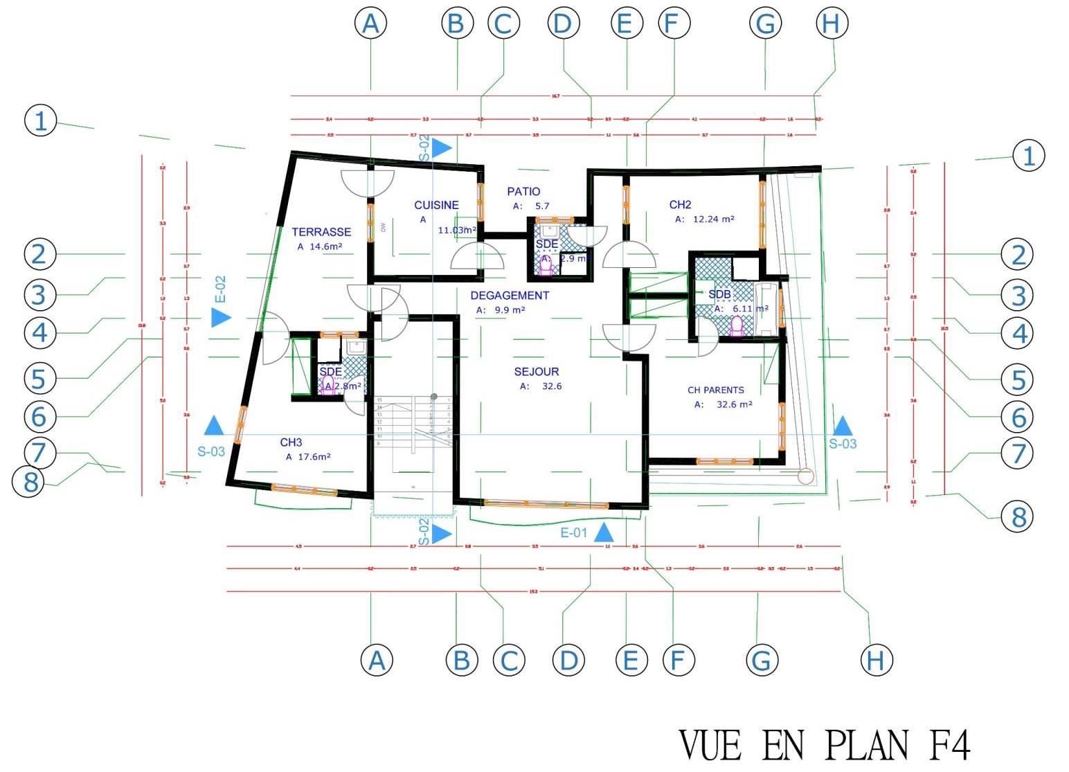 Résidence IMAN - F4 : 168m²Séjour : 32 m²